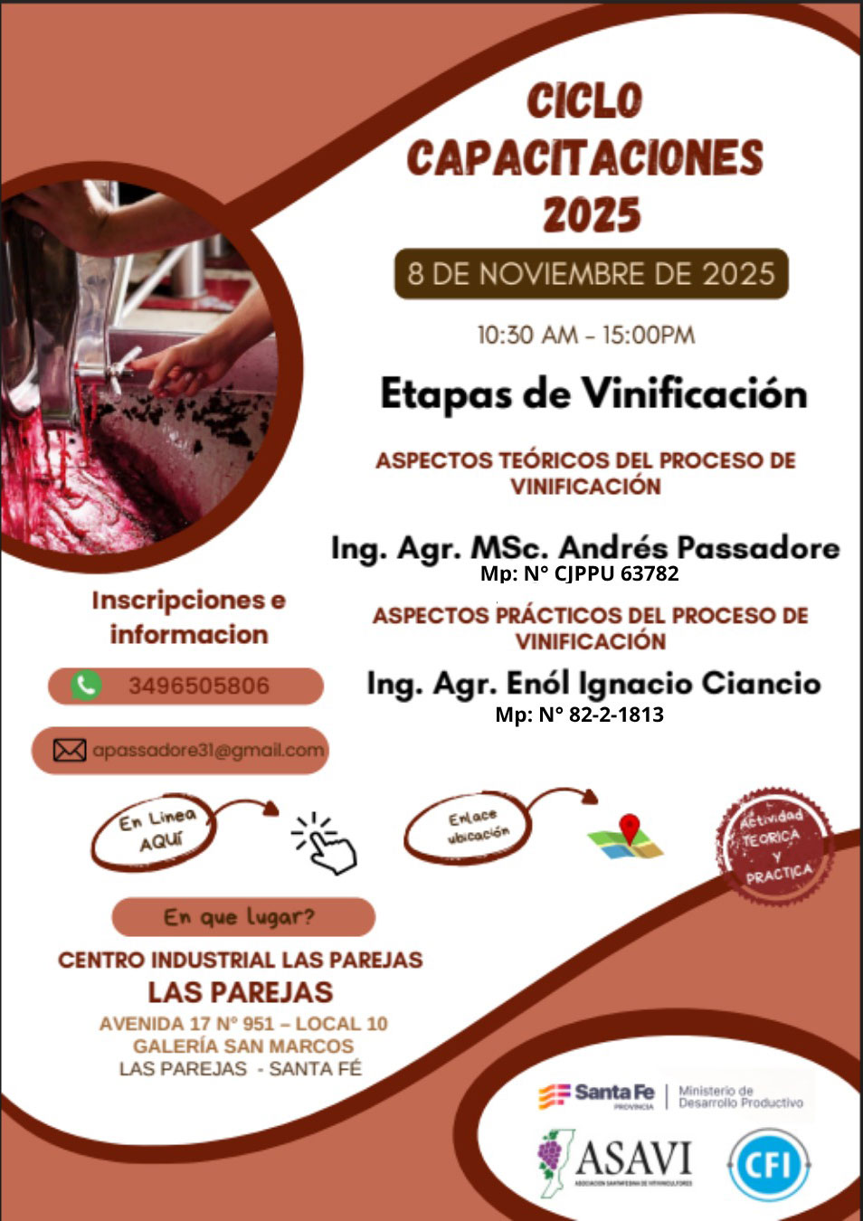 Ciclo de capacitaciones 2025. Aspectos teóricos y prácticos del proceso de vinificación.